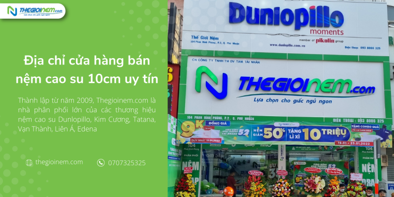 Thegioinem.com cung cấp nệm cao su 10cm của nhiều thương hiệu uy tín trên thị trường. Khách hàng khi mua nệm còn có thể lựa chọn trả góp 0% lãi suất, được bảo hành tận nhà nên có thể yên tâm sử dụng sản phẩm. Mọi thông tin có thể liên hệ hotline hoặc tới ngay cửa hàng để được hỗ trợ.