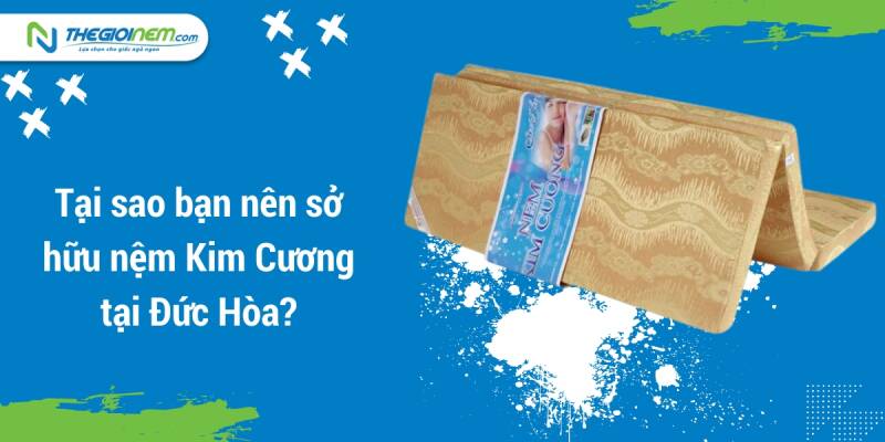 Thegioinem.com là thương hiệu cung cấp nệm chính hãng, giá rẻ uy tín hàng đầu Việt Nam. Bạn hãy đến với chi nhánh đại lý nệm Kim Cương tại Đức Hòa - Long An để có thể sở hữu ngay chiếc nệm chất lượng với mức giá ưu đãi nhất. Hãy tham khảo bài viết này để biết thêm thông tin địa chỉ đại lý bạn nhé!