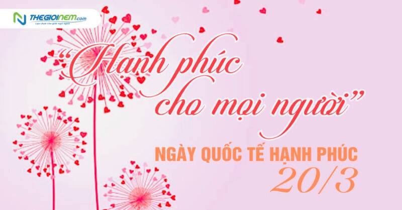 - Chúc bạn Ngày Quốc tế Hạnh Phúc 20/3, ngọt ngào, ấm áp bên gia đình và những người thân yêu.