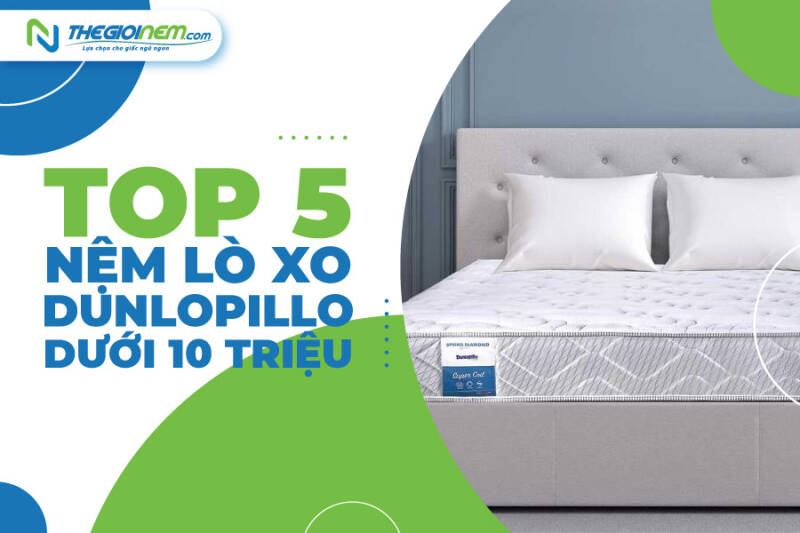 Dunlopillo là một thương hiệu nệm Anh Quốc với chất lượng sản phẩm hàng đầu, được đánh giá cao nhờ khả năng chăm sóc giấc ngủ hoàn hảo. Trong số các sản phẩm thì nệm lò xo Dunlopillo là dòng được yêu thích nhất nhờ thiết kế đặc biệt, chất lượng tốt và mang đến giấc ngủ êm ái. Top 5 nệm lò xo Dunlopillo giá dưới 10 triệu đáng mua mà Thegioinem.com gợi ý sẽ giúp bạn dễ dàng tìm thấy tấm nệm ưng ý.